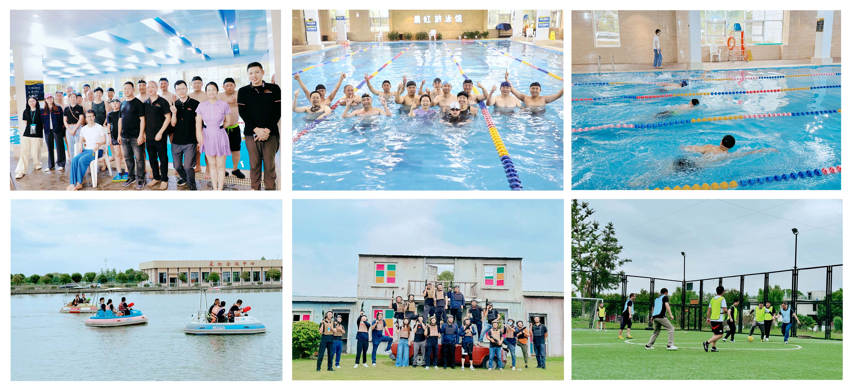 午后的竞技比赛项目,就像是一把火,将现场气氛推向了沸点。真人吃鸡CS比赛,大家瞬间化身为战场上的勇士,全副武装,在丛林与障碍间穿梭、隐匿、突袭,体验了一把现实版的“绝地求生”;五人制足球对抗比赛,各队球员如同灵动的猎豹,在球场上默契配合,激烈对抗。而充满清凉与激情的游泳比赛,则为秋高气爽的午后增添了一抹别样的浪漫与活力,大家在水中尽情挥洒汗水,享受着比赛的乐趣,泳池里充满了欢声笑语。