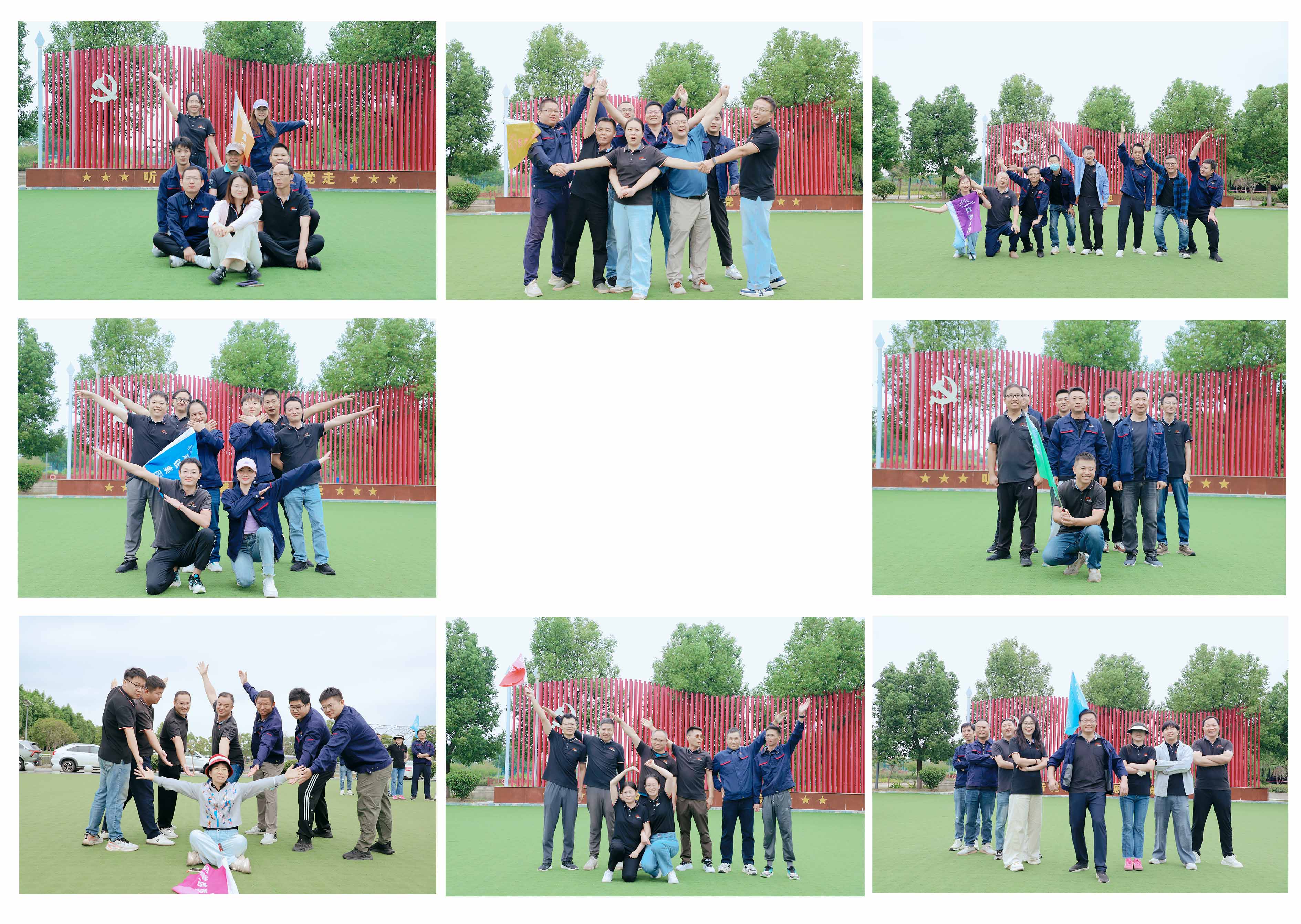 活动伊始,在团建教练的有序组织下,我们迅速形成了八个充满活力的小队。每个小队不仅设计了自己的队名、队徽和口号,还进行了创意十足的团队展示,这个环节让原本有些生疏的同事快速熟络,现场笑声不断,为一整天的团建拉开欢乐序幕。