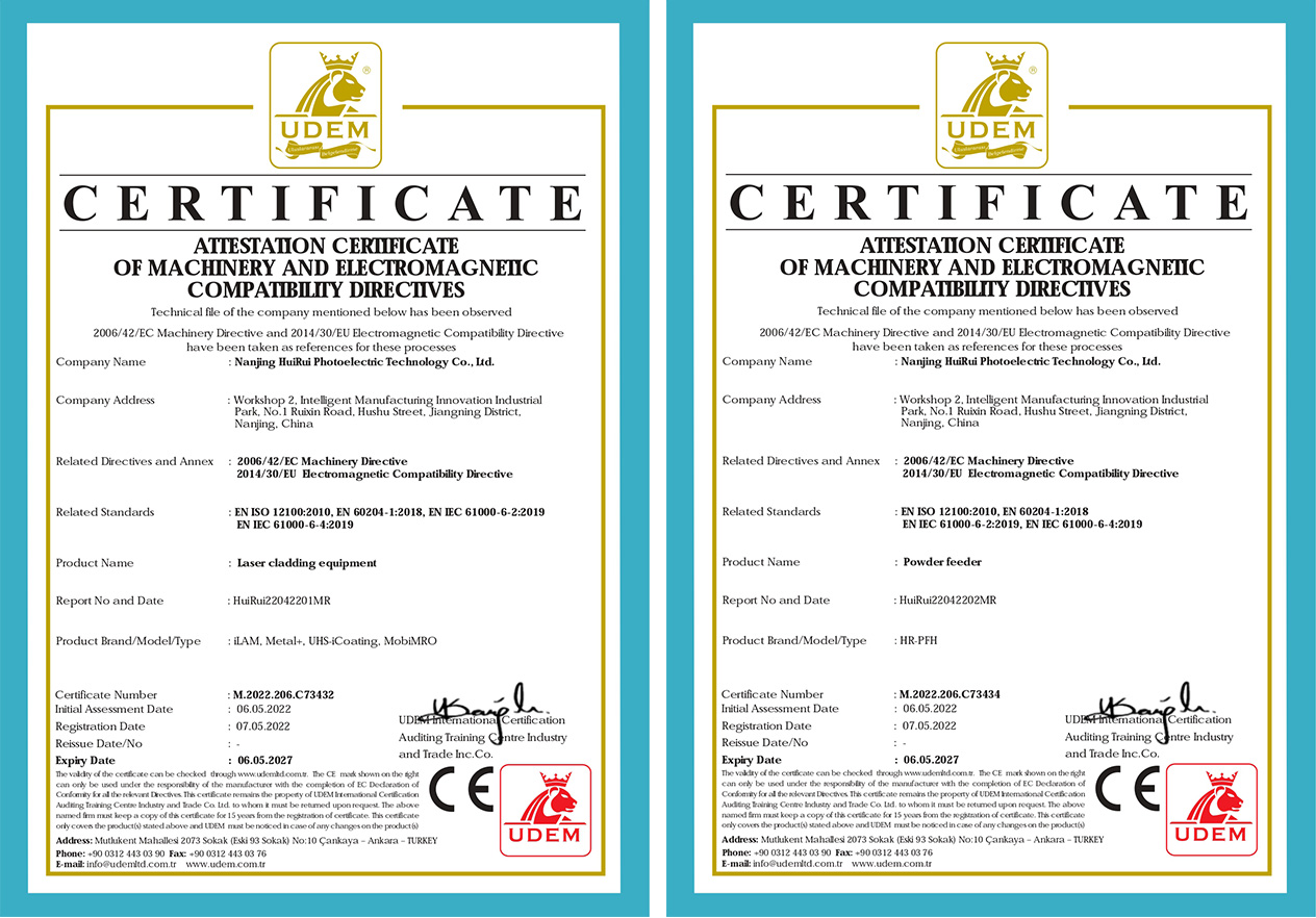 CE certificates for HuiRui equipment and its core components