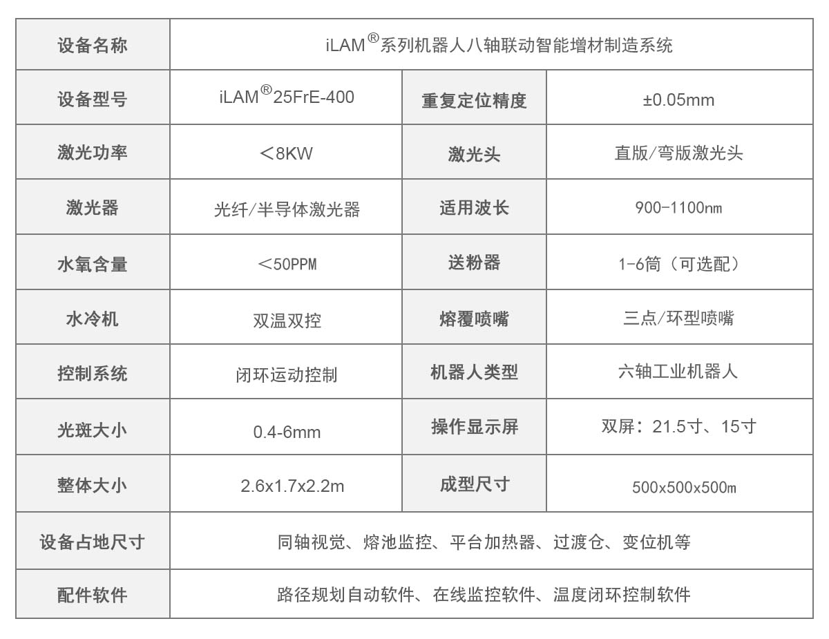 面对高端动力装备、能源装备等行业对复杂构件高精度修复与定制化制造的迫切需求。辉锐依托60余项发明专利及300余项自主知识产权,历经十余年技术沉淀,自主研发出iLAM®系列机器人八轴联动智能增材制造系统。该系统以“多材料兼容性+高通量实验+精准控制”为三大核心优势,突破传统激光熔覆与金属3D打印的技术边界,成为科研创新与工业制造的“双引擎”,可满足高校、科研院所及粉末制造商的精细化设计需求提供了定制化解决方案。