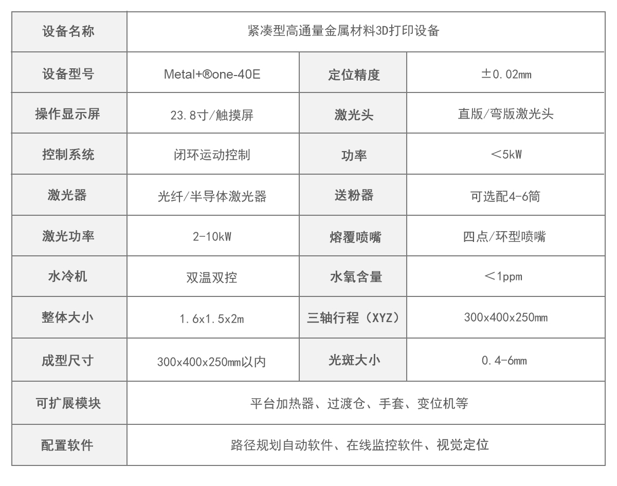 Metal+®one金属直接能量沉积3D打印设备,是辉锐技术团队针对传统工业型激光熔覆设备的应用痛点,专为学校、科研院所及粉末制造商设计的小型化、精细化设备。该设备体积小巧,用粉量少,却拥有强大的功能。其配置的多路送粉器可实现多种粉末的实时混粉,混合比例精确可控。设备搭载专用高通量试验软件系统,支持一次性批量打印不同成分比例的材料样块,极大提升了研究效率。